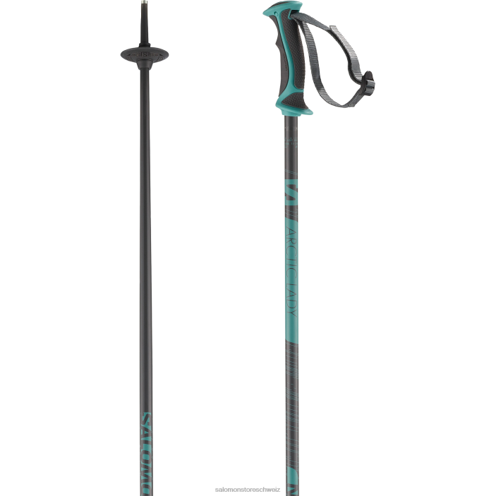 Mit einem speziellen Griff, der speziell für Frauenhände entwickelt wurde, ist der leichte Arctic Lady-Stock robust, langlebig und kann mit allen Salomon-Skigrafiken kombiniert werden.